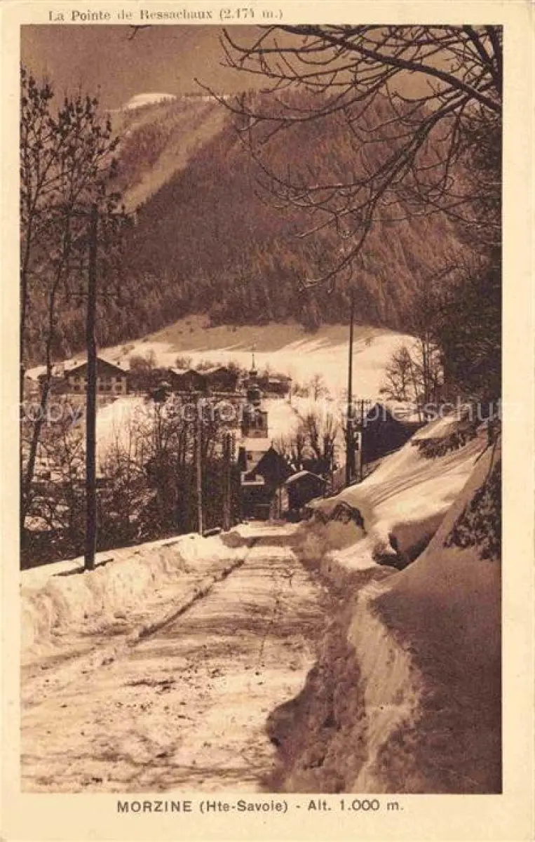 14109493 Morzine Thonon-les-Bains 74 Haute-Savoie Verschneite Zufahrtsstrasse postalisch nicht gelaufen Erhaltung siehe scans [FriedD77] Frie Katcode 11170074474191