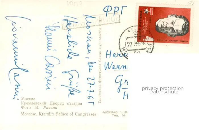 Moscow_Moskva Kremlin Palace of Congresses Moscow Moskva postalisch gelaufen 1965 Erhaltung siehe scans [FriedD77] Frierer