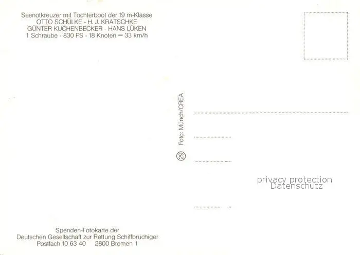 Motorboote Seenotkreuzer mit Tochterboot Otto Schuelke H. J. Kratsche Motorboote postalisch nicht gelaufen nach 1965 Erhaltung siehe scans [PaolaD17] PaolPID1