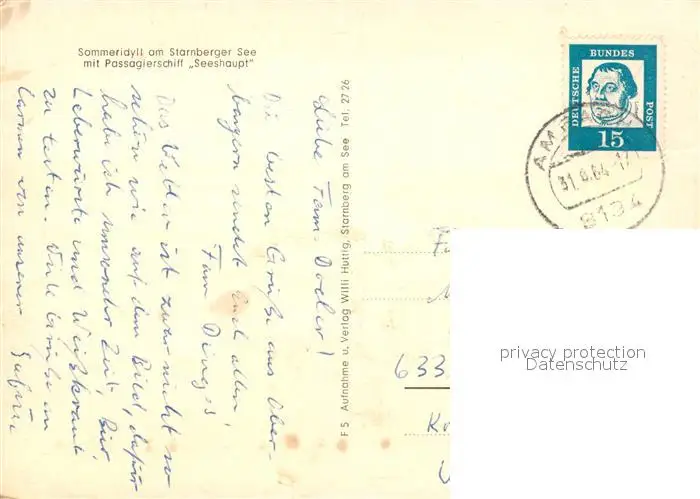 Motorschiffe Seeshaupt Starnberger See Motorschiffe postalisch gelaufen 1964 Erhaltung siehe scans [PaolaD17] PaolPID1