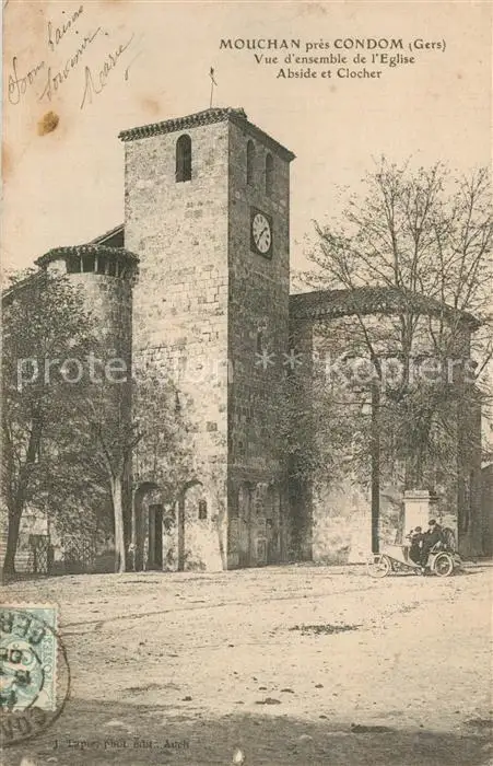 Mouchan Condom Ensemble de l'Eglise Abside Clocher Mouchan postalisch gelaufen 1903 Erhaltung siehe scans [KathaD81] Kathoren