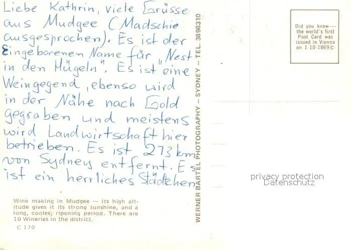 Mudgee Wine making in Mudgee Panorama Mudgee postalisch nicht gelaufen nach 1965 Erhaltung siehe scans [WerneD78] WernPID7