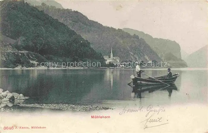 alte Postkarte Muehlehorn Walensee GL Uferpartie am See postalisch gelaufen Erhaltung siehe scans [FriedD77]