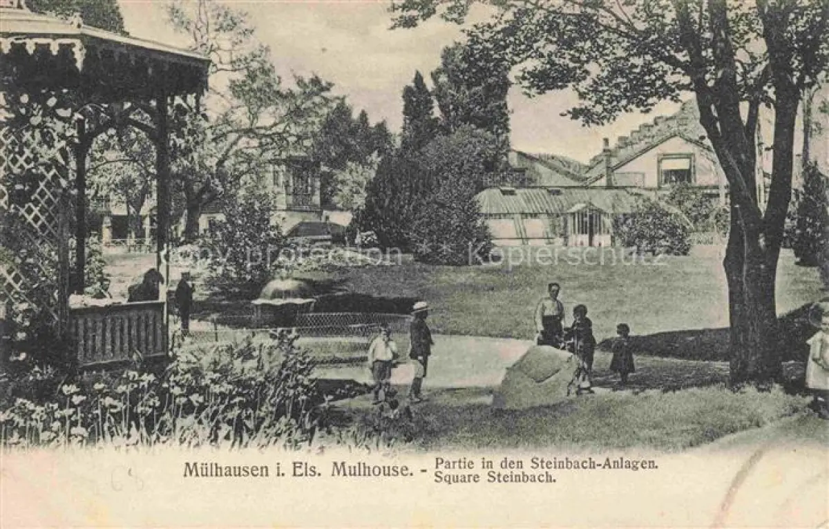 14113750 Muelhausen Elsass Partie in den Steinbach-Anlagen Square Steinbach postalisch nicht gelaufen Erhaltung siehe scans [FriedD77] Frie Katcode 11170068468224