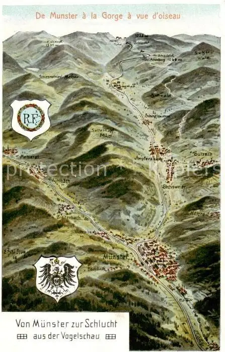 Muenster__Elsass_Munster_68_Alsace De Munster a la Gorge a vue d'oiseau postalisch gelaufen 1921-1965 Erhaltung siehe scans [WerneD78] WernPID7