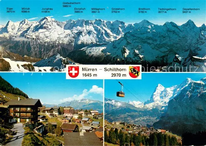 AK / Ansichtskarte Muerren_BE Alpenpanorama Schilthorn Gondelbahn Muerren_BE