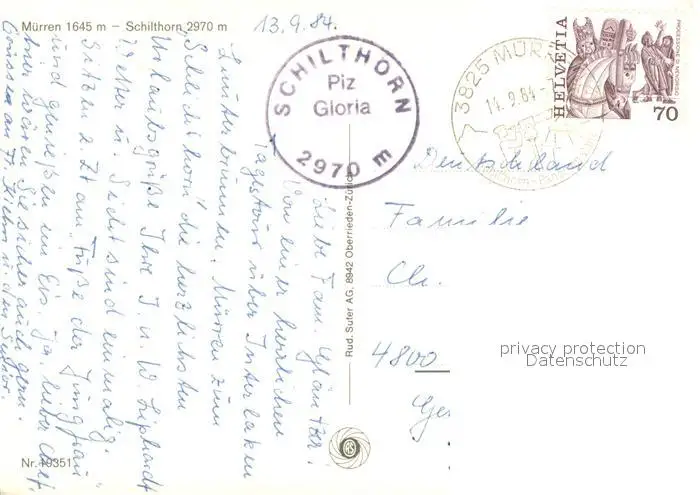 Muerren_BE Alpenpanorama Schilthorn Gondelbahn Muerren_BE postalisch gelaufen 1984 Erhaltung siehe scans [WerneD78] WernPID7