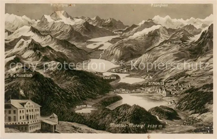 Muottas_Muragl_Muottas_Murail_2453m_GR Panorama postalisch gelaufen 1921-1965 Erhaltung siehe scans [FriedD77] Frierer