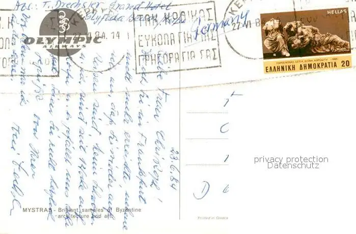 Mystras Brilliant samples of Byzantine architecture and art Mystras postalisch gelaufen 1984 Erhaltung siehe scans [FriedD77] Frierer