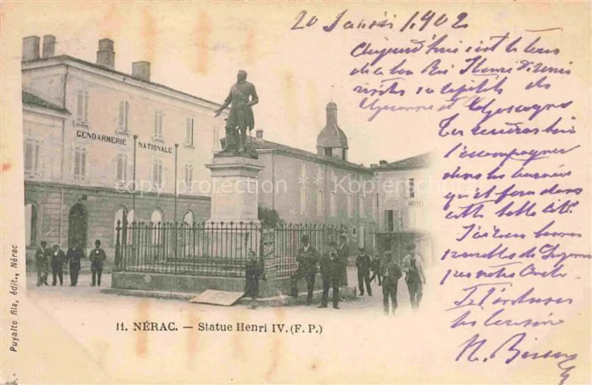 14119422 NERAC-EN-ALBRET 47 Lot-et-Garonne Statue Henri IV postalisch gelaufen Erhaltung siehe scans [WerneD78] alte Postkarte Wern Katcode 11170047447195