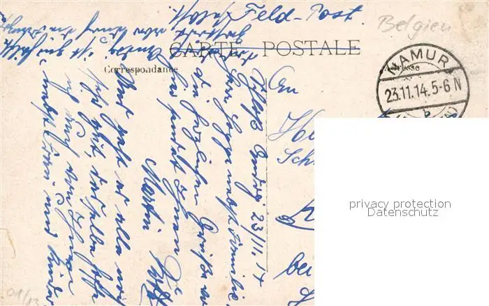 Namur_sur_Meuse Rue Mathieu Namur_sur_Meuse postalisch gelaufen 1914 Feldpostkarte Erhaltung siehe scans [WerneD78] Feldpostkarte WernPID7