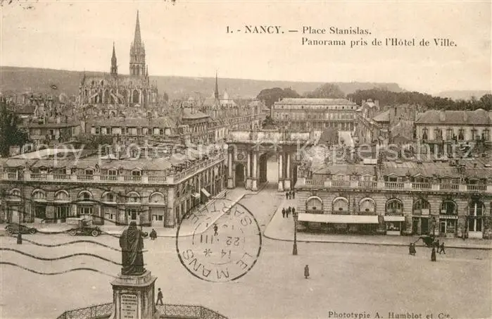 Nancy_Lothringen Place Stanislas vue prise de l'Hôtel de Ville Nancy Lothringen postalisch gelaufen 1921 Erhaltung siehe scans [FriedD77] Frierer