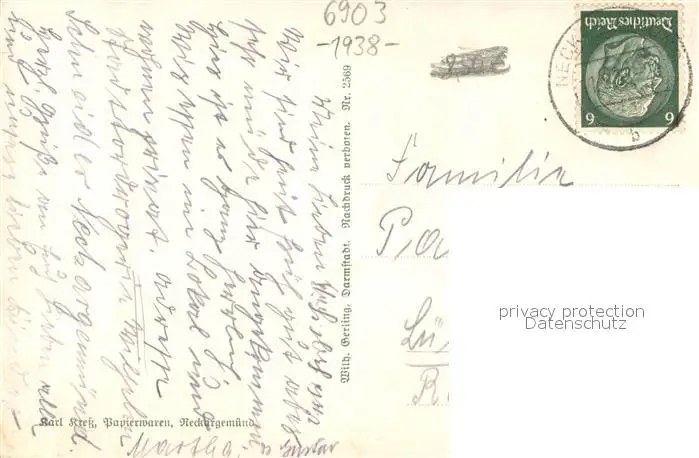 Neckargemuend Panorama Luftkurort Neckargemuend postalisch gelaufen 1938 Erhaltung siehe scans [FriedD77] Frierer