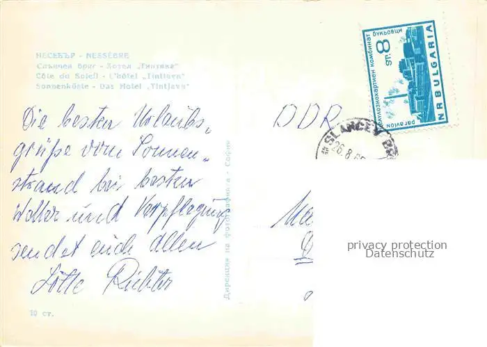 old postcard Nessebre Nessebar Nessebyr BG Hotel Tintjava postalisch gelaufen Erhaltung siehe scans [WerneD78]
