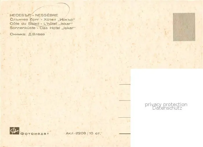 Nessebre_Nessebar_Nessebyr_BG Hotel Iskar postalisch nicht gelaufen nach 1965 Erhaltung siehe scans [WerneD78] WernPID7