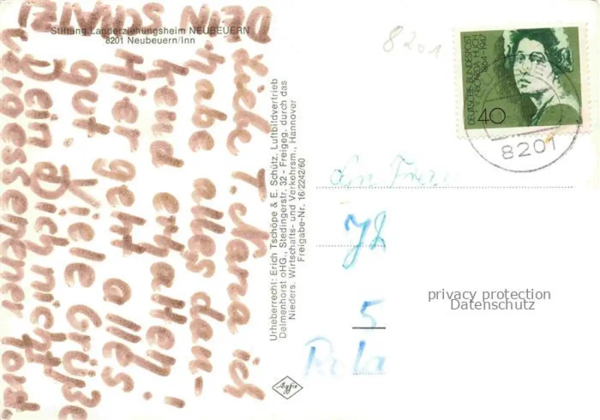 alte Postkarte Neubeuern Inn Rosenheim Bayern Stiftung Landerziehungsheim postalisch gelaufen Fliegeraufnahme Erhaltung siehe scans [FriedD77]
