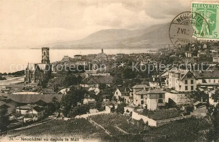 Neuchatel_NE Vue depuis le Mail Neuchatel NE postalisch gelaufen 1908 Erhaltung siehe scans [WerneD78] WernPID7