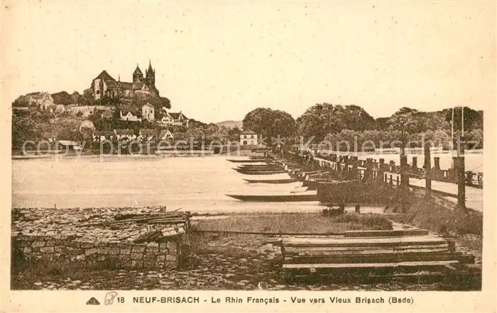 Neuf-Brisach Rhin Francais vue vers Vieux Brisach Schiffsbruecke Muenster Neuf-Brisach postalisch nicht gelaufen 1921-1965 Erhaltung siehe scans [FriedD77] Frierer