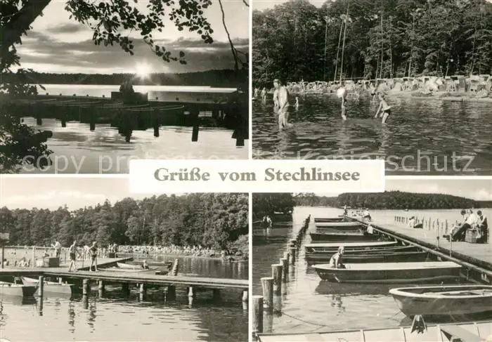 Neuglobsow Partie am Stechlinsee Badesteg Strand Neuglobsow postalisch gelaufen 1980 Erhaltung siehe scans [FriedD77] Frierer