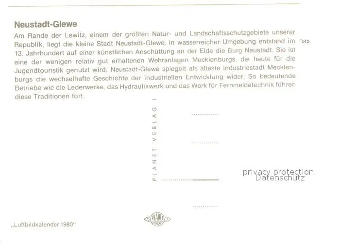 Neustadt Glewe Kategorie Alte Ansichtskarten Postkarten bx93855 Neustadt Glewe Fliegeraufnahme Neustadt Glewe postalisch nicht gelaufen nach 1965 Erhaltung siehe scans [WerneD78]