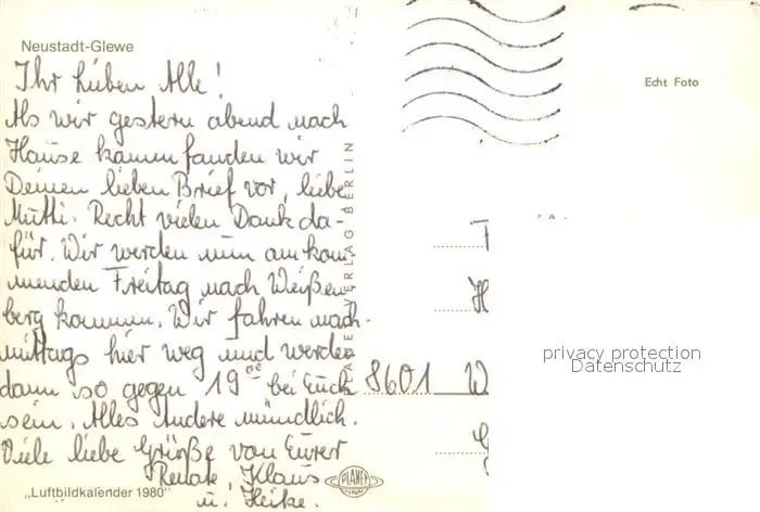 Neustadt-Glewe Fliegeraufnahme Teilansicht Neustadt-Glewe postalisch gelaufen 1921-1965 Erhaltung siehe scans [LiesaD40] LiesID40