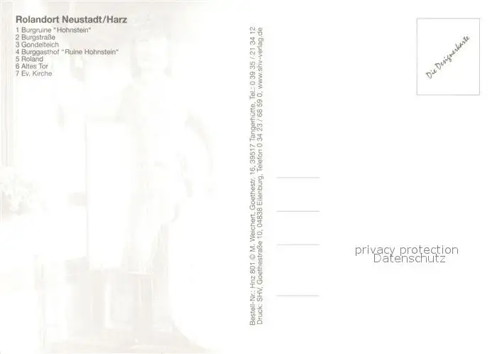 Neustadt_Harz Burgruine Hohnstein Burgstrasse Gondelteich Burggashof Roland Kirche Neustadt_Harz postalisch nicht gelaufen nach 1965 Erhaltung siehe scans [KathaD81] Kathoren