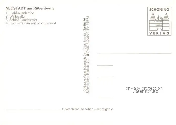 Neustadt_Ruebenberge Liebfrauenkirche Wallstrasse Schloss Landestrost Storchennest Neustadt_Ruebenberge postalisch nicht gelaufen nach 1965 Erhaltung siehe scans [KathaD81] Kathoren