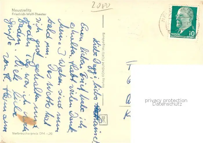 Neustrelitz Friedrich Wolf Theater Neustrelitz postalisch gelaufen nach 1965 Erhaltung siehe scans [FriedD77] Frierer