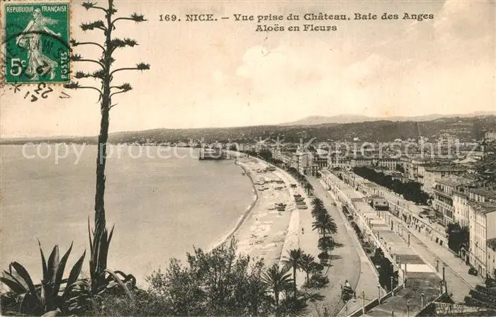 Nice_Alpes_Maritimes Baie des Anges Aloes en fleurs vue prise du Château Nice_Alpes_Maritimes postalisch gelaufen 1912 Erhaltung siehe scans [FriedD77] Frierer