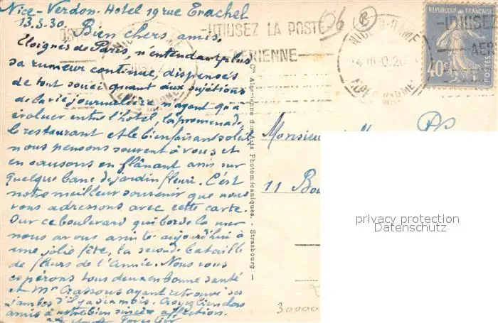 Nice_Alpes_Maritimes Baie des Anges à travers les pins Côte d'Azur Nice_Alpes_Maritimes postalisch gelaufen 1930 Erhaltung siehe scans [FriedD77] Frierer