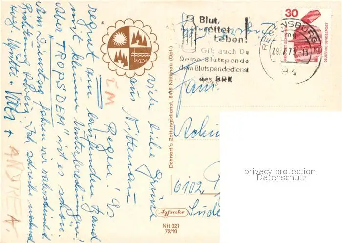 Nittenau Motiv mit Kirche Freibad Fliegeraufnahme Nittenau postalisch gelaufen 1973 Erhaltung siehe scans [FriedD77] Frierer