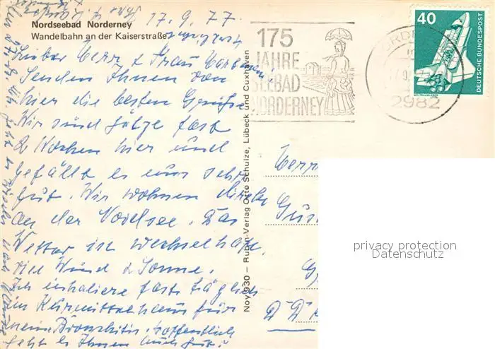 Norderney_Nordseebad Wandelbahn an der Kaiserstrsse Norderney_Nordseebad postalisch gelaufen 1977 Erhaltung siehe scans [FriedD77] Frierer