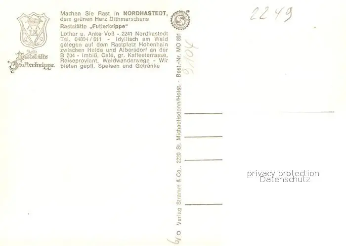 Nordhastedt Raststaette Futterkrippe Gastraeume Freiterrasse Nordhastedt postalisch nicht gelaufen nach 1965 Erhaltung siehe scans [WerneD78] WernPID7
