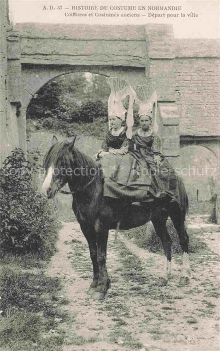 AK / Ansichtskarte Normandie Region 76 Coiffures et Costumes anciens Depart pour la ville