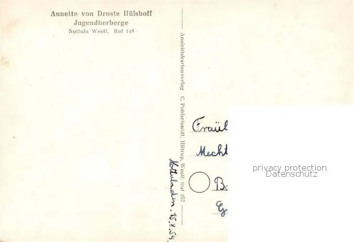 Nottuln Annette von Droste Huelshoff Jugendherberge Nottuln postalisch nicht gelaufen 1921-1965 Erhaltung siehe scans [WerneD78] WernPID7