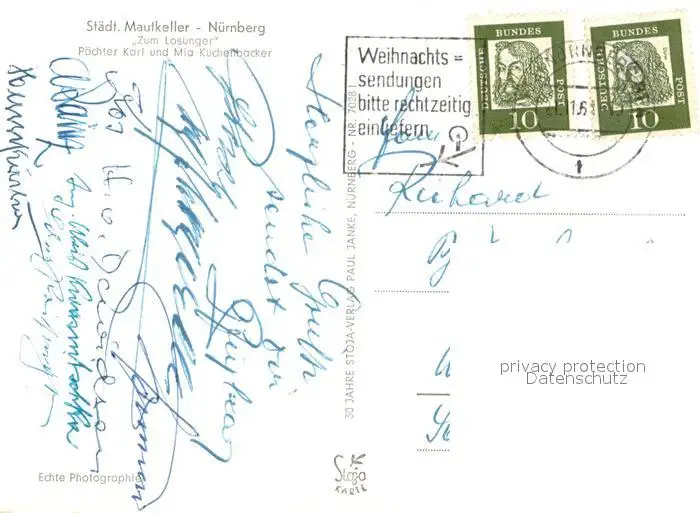 Nuernberg Staedt. Mautkeller Zum Losunger Innenansicht Nuernberg postalisch gelaufen 1961 Erhaltung siehe scans [LiesaD40] LiesID40