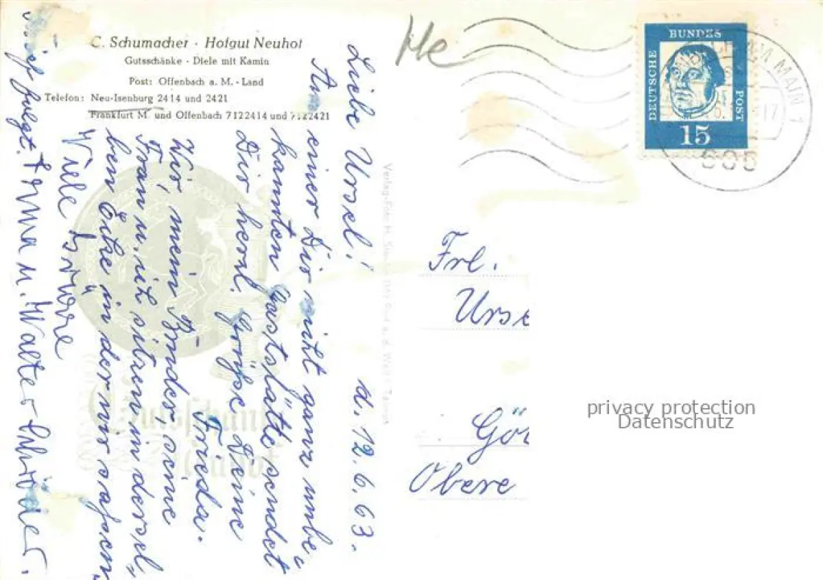 74118151 OFFENBACH MAIN Hofgut Neuhof Gutsschaenke postalisch gelaufen Erhaltung siehe scans [FriedD77] alte Postkarte Frie Katcode 11110006413000