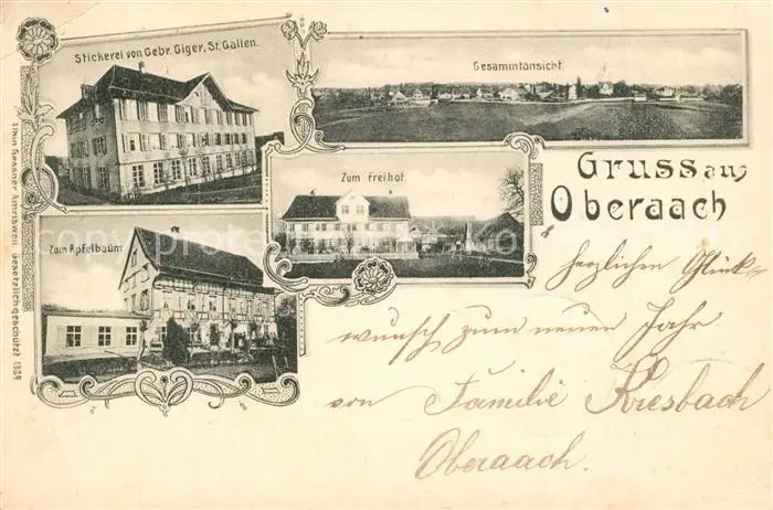 Oberaach Stickerei St Gallen Panorama Zum Apfelbaum Zum Freihof Oberaach postalisch gelaufen bis 1920 Erhaltung siehe scans [WerneD78] WernPID7
