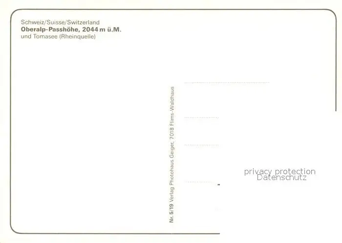 Oberalppass mit Tomasee Rhein Ursprung Eisenbahn Oberalppass postalisch nicht gelaufen nach 1965 Erhaltung siehe scans [WerneD78] WernPID7