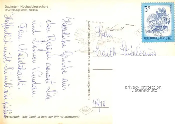 Obertraun Dachstein Hochgebirgsschule Oberfeld Gjaidalm Obertraun postalisch gelaufen nach 1965 Erhaltung siehe scans [NatalD47] NataID47