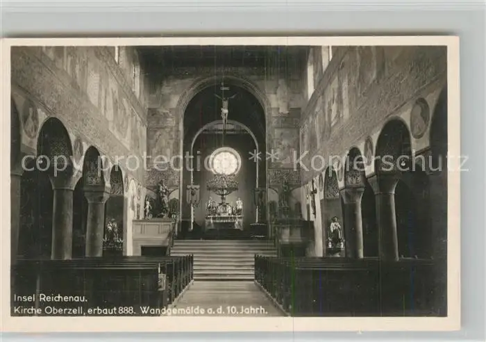 Oberzell_Reichenau Kirche Innenansicht Wandgemaelde 10. Jhdt. Oberzell Reichenau postalisch nicht gelaufen 1921-1965 Erhaltung siehe scans [FriedD77] Frierer