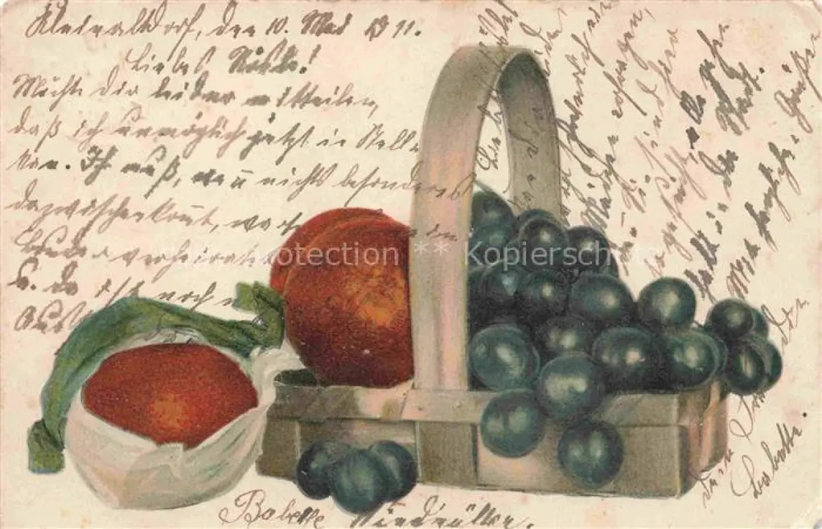 alte Postkarte Obst Fruit Frutta Fruta-- Trauben postalisch gelaufen Erhaltung siehe scans [SanaeD93]