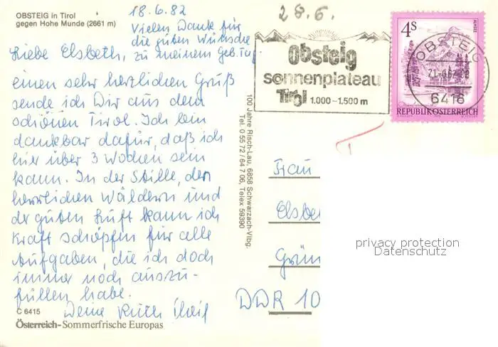 Obsteig_Tirol Panorama mit Hohe Munde Obsteig_Tirol postalisch gelaufen 1982 Erhaltung siehe scans [WerneD78] WernPID7