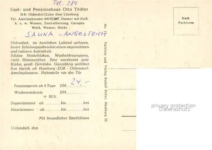 Oldendorf_Luhe Gast und Pensionshaus Otto Toedter Heidelandschaft Park Fluss Oldendorf Luhe postalisch nicht gelaufen 1921-1965 Erhaltung siehe scans [WerneD78] WernPID7