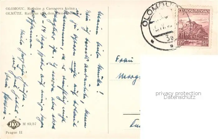 Olmuetz_Olomouc_CZ Rathaus m. d. Caesarbrunnen postalisch gelaufen 1921-1965 Erhaltung siehe scans [LiesaD40] LiesID40
