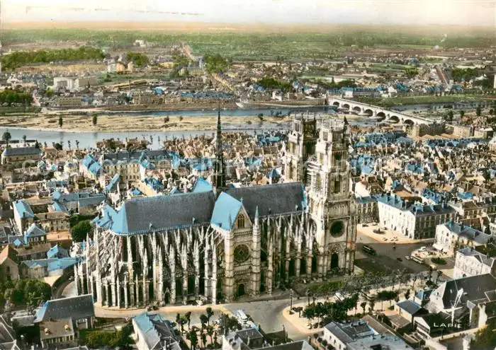 AK / Ansichtskarte Orleans_Loiret La Cathedrale Saint Croix et la Loire vue aerienne Orleans_Loiret