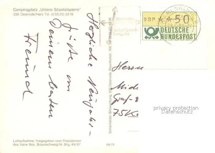 Osterode_Harz Campingplatz Untere Soesetalsperre Fliegeraufnahme Osterode_Harz postalisch gelaufen 1980 Erhaltung siehe scans [FriedD77] Frierer