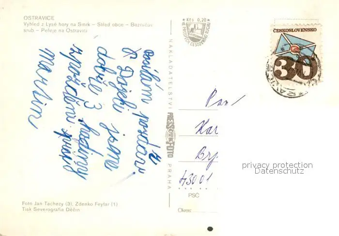 Ostravice Vyhled z Lyse hory na Smrk Stred obce Bezrucuv srub Pereje na Ostravice Ostravice postalisch gelaufen nach 1965 Erhaltung siehe scans [WerneD78] WernPID7