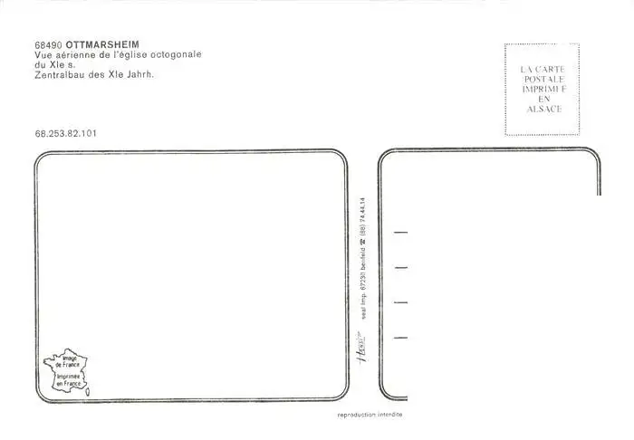Ottmarsheim_68_Alsace Vue aerienne de l'eglise octogonale postalisch gelaufen nach 1965 Erhaltung siehe scans [FriedD77] Frierer