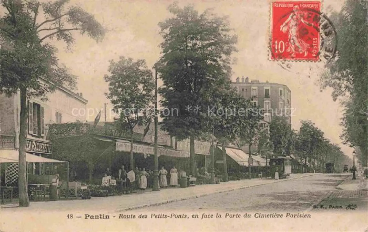 carte postale PANTIN Bobigny 93 Seine-Saint-Denis Route des Petits-Ponts en face la Porte du Cimetière Parisien postalisch gelaufen Erhaltung siehe scans [FriedD77]